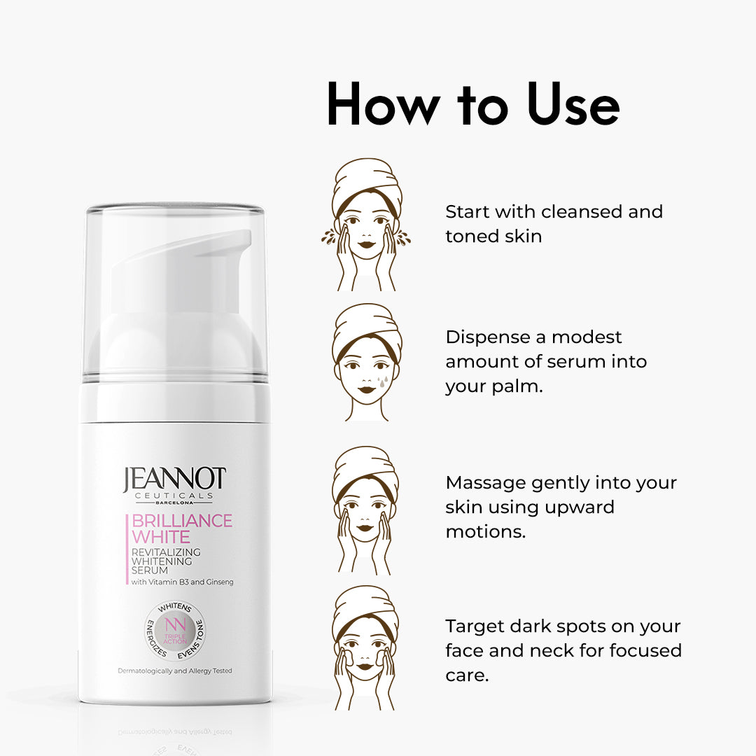 Indulge your skin in the luxurious transformation brought by Jeannot Ceuticals' Revitalizing Whitening Serum, a gem within the prestigious Brilliance White range. If you desire a whitening serum that not only addresses skin spots but also harmonizes your skin tone, your search ends here.